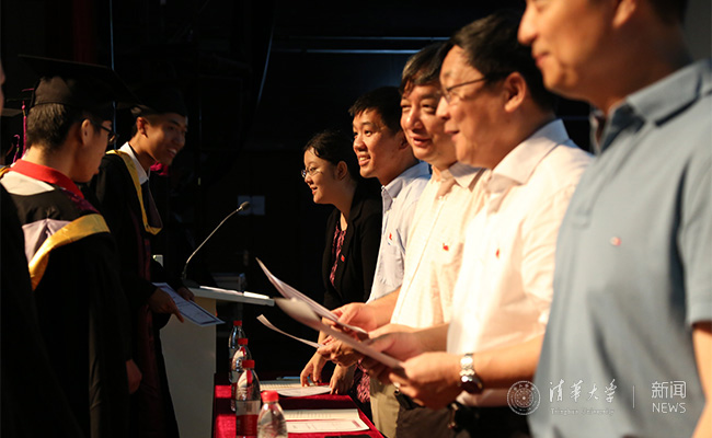 计算机系为毕业生颁发证书。