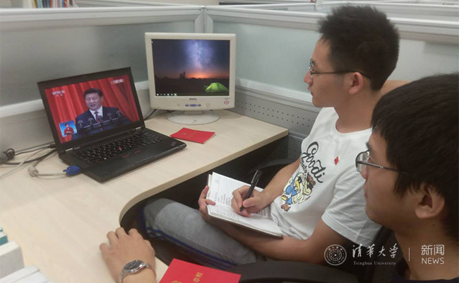 热能系学生党员收看七一大会直播。