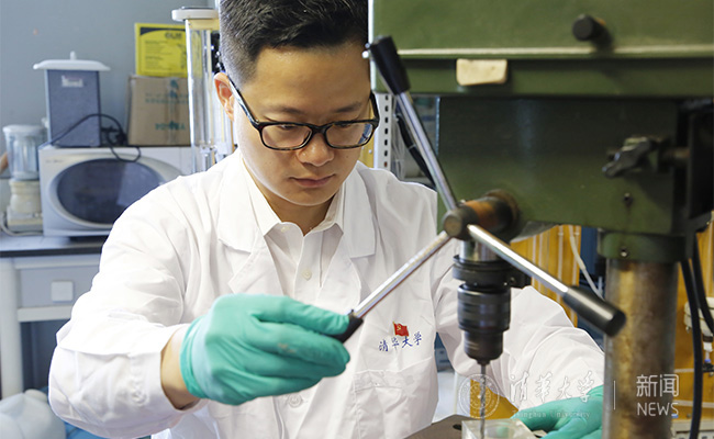 环境学院环硕141支部张照雨正在做实验。