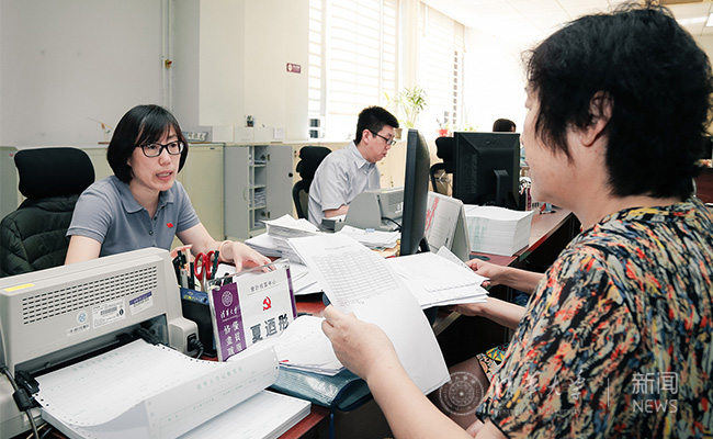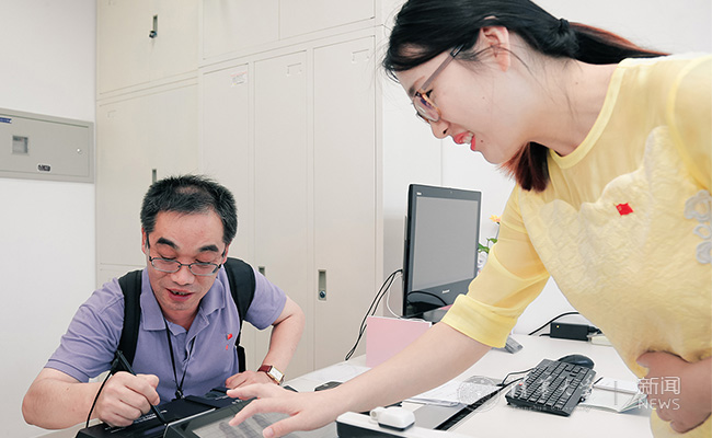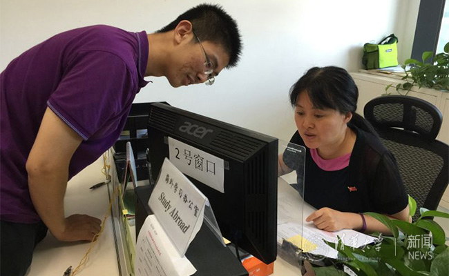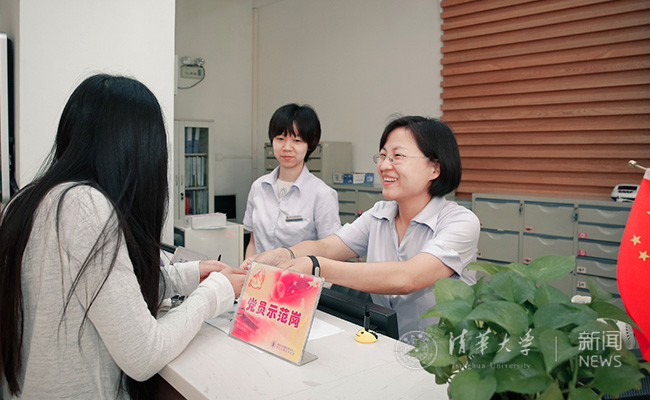 国际处共产党员夏丰娜为教师办理手续。记者 张宇