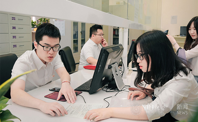 国际处海外学习办公室党员李红宇在处理业务。
