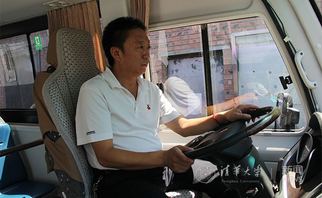 校园交通车党员司机开行在清华园内。