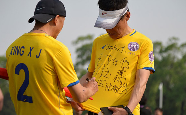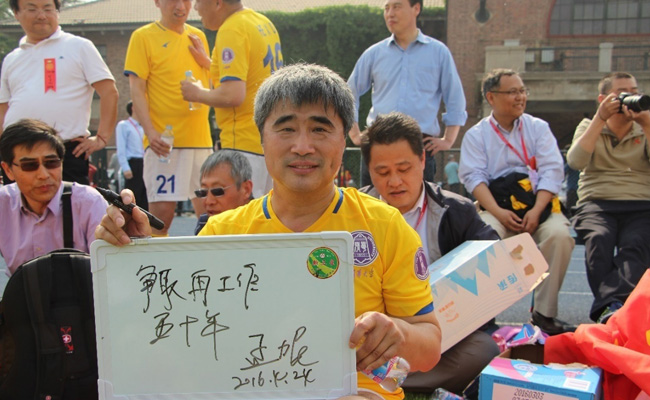 比赛结束,年过半百的队员们充满活力地在赛场上奔跑致意,相互签名留念。第一个攻破球门的热能系81级校友自豪地说,虽然81级都已经毕业工作了三十年,到了当爷爷的年纪,依然能在足球场上冲锋陷阵,这和清华一贯的体育传统和严格要求是分不开的。观众们为浓厚的比赛气氛所熏陶,久久不愿离去。