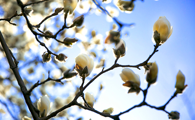 清华新闻网3月29日电(记者 苑 洁   在一朵花的眼中,清华也许是清晨车流汹涌的学堂路,也许是午后斜阳下的北院旧址,也许是傍晚花枝间摇曳的自习室的灯光,也许是荷塘初绿时游人交织的藤影荷声。每一朵花都是一段爱的诉说,映衬着这个春天于清华最动人的邂逅。