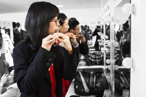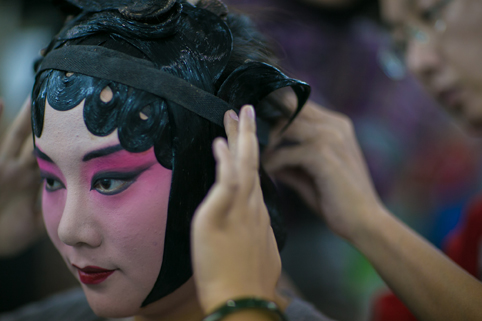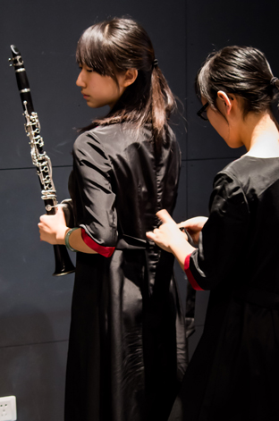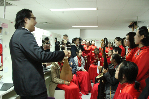 民乐队的同学们在化妆间内齐唱参赛曲目《踏歌》。周睿