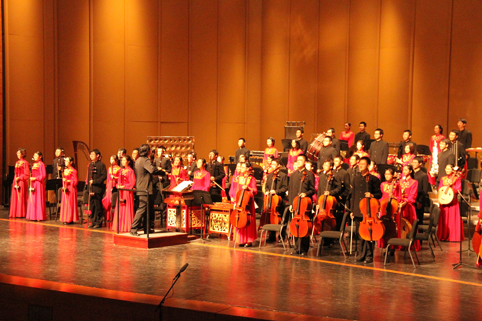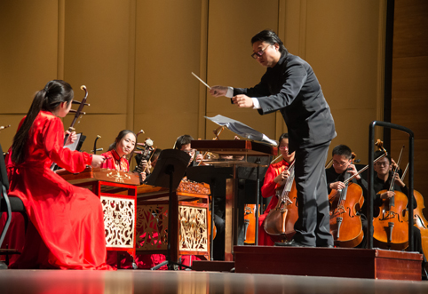 民乐队演奏《踏歌》《古槐寻根》。王梓林