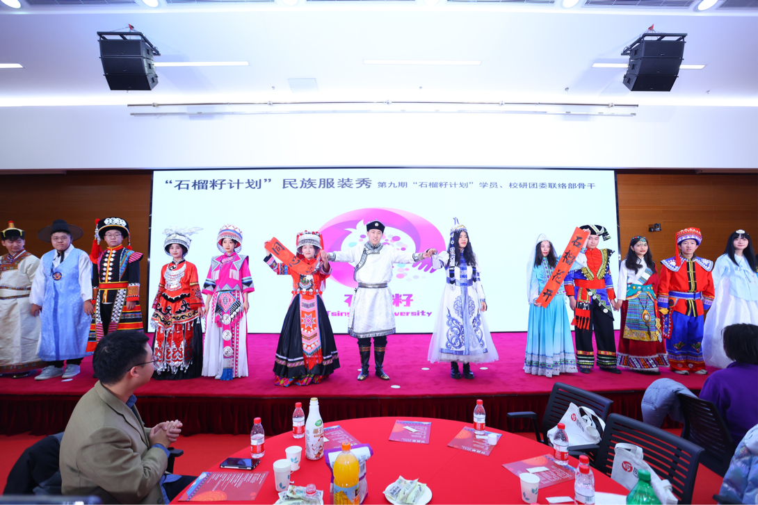 节目开场,来自大凉山的彝族同学身着民族服饰,带来了合唱曲目《我是山里人》,以醇厚的嗓音和悦耳的旋律点燃了现场气氛。维吾尔族同学迪丽努尔身着花裙头戴花帽,用一支美丽的新疆舞蹈把现场气氛带到了最高点。哈萨克族的两位同学带来的冬不拉演奏,仿佛将现场的观众带到了遥远的天山脚下,听泉水叮咚、树木作响。十几位“石榴籽计划”第九期学员身着各民族服饰,带来了一场生动有趣的民族服装秀。曲艺队带来的相声表演和魔术协会带来的魔术“身体的秘密”,收获了阵阵笑声和掌声。第26届研究生支教团带来的歌曲《无问》《与你西行》,更展现了清华学子一往无前的情怀与抱负。晚会还邀请了来自云南南涧等地、在清华附中参加“成志英才计划”的各民族学生共同迎接新年。