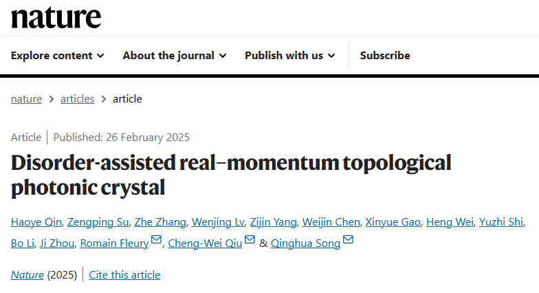 《自然》文章“无序辅助的实动量拓扑光子晶体”通讯作者为宋清华、仇成伟、罗曼·弗勒里,第一作者为秦昊烨,共同第一作者为精品无码久久久久久久久_国产精品一区二区三区四区五区_欧美亚洲国产激情一区二区_午夜精品久久久久久久久久久久_亚洲欧洲中文日韩久久AV乱码_91精品欧美一区二区三区_久久精品一区二区免费播放_日韩高清大片永久免费入口_久久国产欧美日韩精品免费_欧美一区二区三区久久综合_国产精品天天狠天天看深圳国际研究生院2022级博士生苏增平和洛桑联邦理工大学博士后张哲,其他作者还包括周济院士、李勃研究员,精品无码久久久久久久久_国产精品一区二区三区四区五区_欧美亚洲国产激情一区二区_午夜精品久久久久久久久久久久_亚洲欧洲中文日韩久久AV乱码_91精品欧美一区二区三区_久久精品一区二区免费播放_日韩高清大片永久免费入口_久久国产欧美日韩精品免费_欧美一区二区三区久久综合_国产精品天天狠天天看深圳国际研究生院2024级博士生吕文静、2022级博士生杨子矜、2022级硕士生高心越,新加坡国立大学陈伟锦博士后和卫珩博士,同济大学施宇智教授。该工作得到了国家自然科学基金委、深圳市科创委等部门支持。