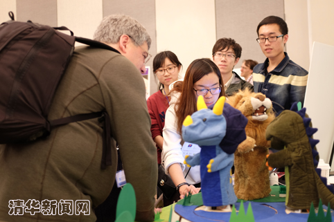 本次比赛的主题是“Animatronics”——利用机械电子控制的实体角色,目的是可以让高中生进行创新故事表演。比赛在全球范围内筛选方案,最终确定了16支队伍入围决赛,前往美国夏洛特进行现场评比。在入围决赛的队伍中,清华美院信息艺术设计交叉学科团队成为仅有的两支来自中国大陆的队伍。11月10日下午举行了现场比赛,通过选手现场演示、专家评审,最终决出“最佳软件创新奖”、“最佳硬件创新奖”两项大奖。清华美院学生的设计理念、原型实现能力、现场演示效果,均获得了众多知名专家的好评。很多专家学者也进一步表达了对清华美院交叉学科人才培养模式的浓厚兴趣。