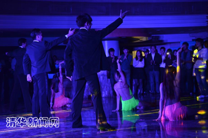 本次舞会以“与世界共舞——大型国际舞会”为主题,历时3个小时。来自清华艺术团国标队的姑娘们和小伙子们率先在舞池中央开舞。热情洋溢、活力四射的开场舞随着一曲风格强劲的外文舞曲“On the Floor引爆全场。