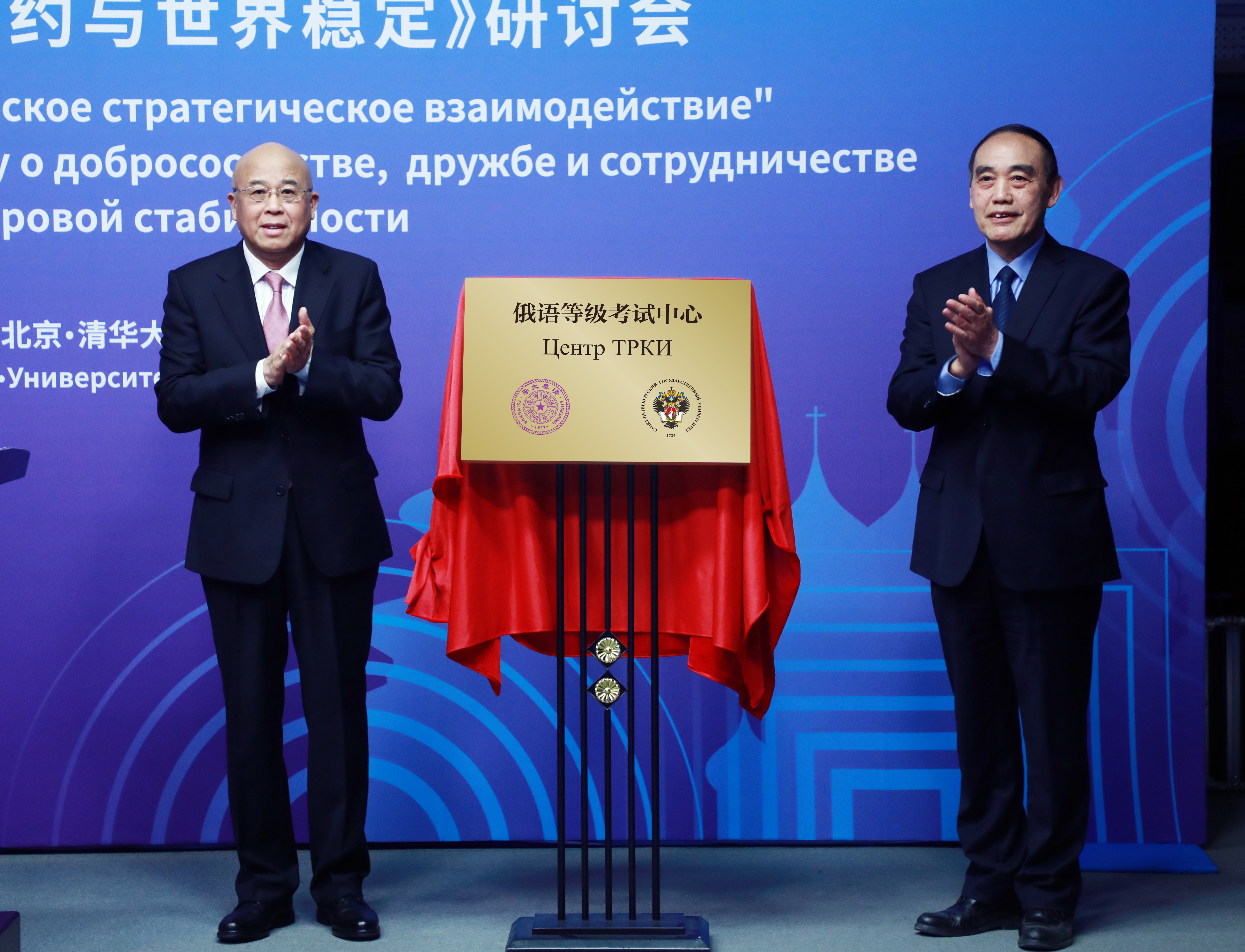 论坛开始前举行了“俄语等级考试中心”揭牌仪式,袁驷与周力共同揭牌,圣彼得堡国立大学副校长谢尔盖•安德留申(Sergey Andryushin)在线见证并致辞。