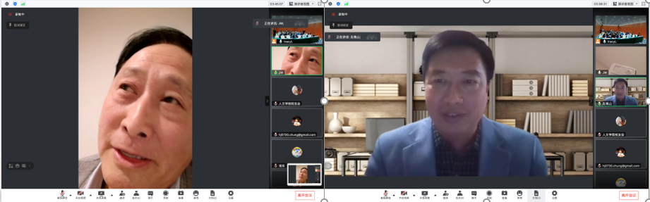 副校长彭刚,校党委原副书记、人文社科学院原院长胡显章,人文学院院长万俊人,人文学院党委书记、校友工作领导小组组长孙明君,人文学院党委副书记、外文系主任兼党总支书记吴霞,副院长蔡文鹏,以及返校校友等60余人通过线上线下相结合的方式出席。会议由人文学院党委副书记曲莎莎主持。