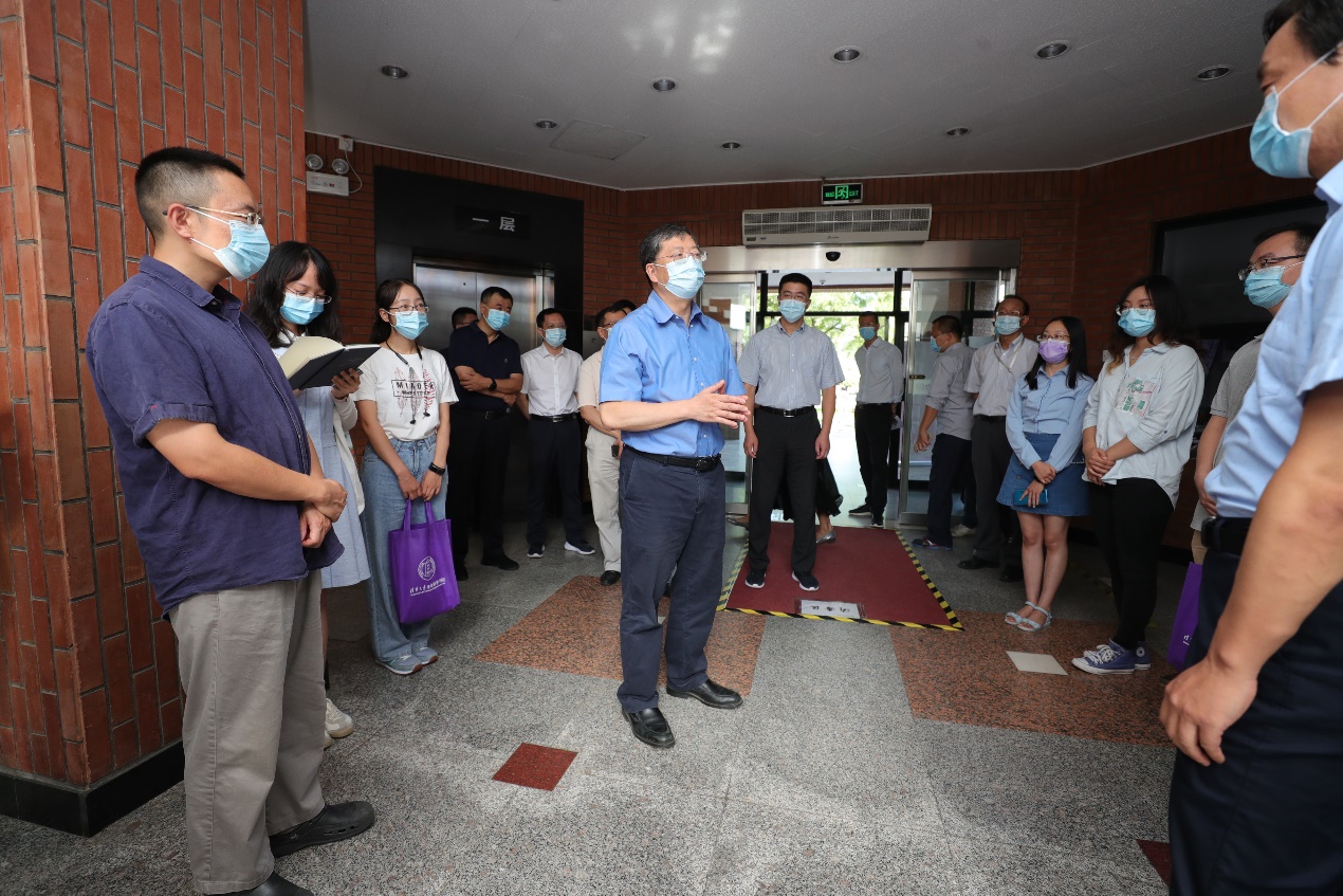 清华新闻网8月25日电(记者 吕婷 曲田 摄影 李派 常志东)8月25日上午,校长邱勇,校党委书记陈旭,副校长、总务长吉俊民,副校长、教务长杨斌,校党委副书记过勇等到院系迎新点和学生公寓检查迎新工作,看望前来报到的研究生新生,并慰问参加迎新工作的师生员工。