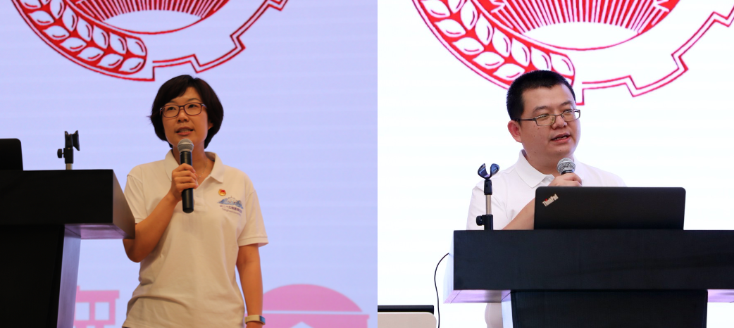 (从左至右)张婷在结业典礼上发言、徐鹏在开学典礼上发言