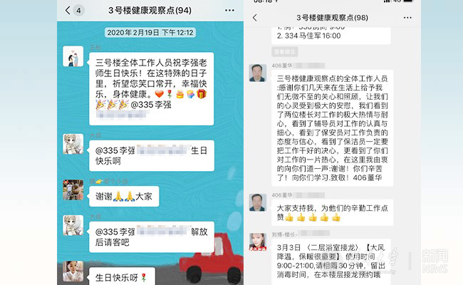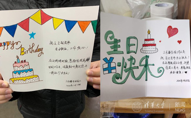 除了线上生日祝福、手工贺卡,在这个非常时期,集中观察点的后勤教职工还要在微信群定时提醒开窗通风、填报体温,严格消毒、送餐上门、随时在线答疑解惑……用“隔离不隔心”的温暖,为返京教职工筑牢“安全防线”。