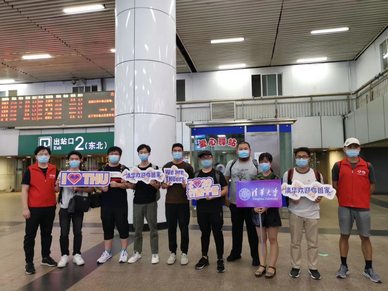 6月6日是来自山西太原的生命学院博士生寇甜甜返校的日子。一出车站,寇甜甜就看到了高举“风里雨里、清华等你”指引牌、穿着熟悉的红色马甲的学校接站志愿者。志愿者们“欢迎回家”的亲切问候,让她顿时有了温暖的感觉。