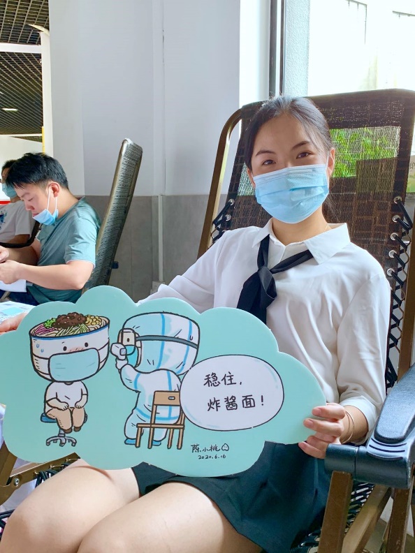 教育研究院2017级硕士生蒋涵和同学一起来到现场献血,希望能够在毕业前再参与一次学校的志愿活动,再一次感受清华的教育传统。她表示,能够在毕业典礼前再参与一次献血活动,把一份爱留在生活了七年的园子里,是一份宝贵又美好的记忆。