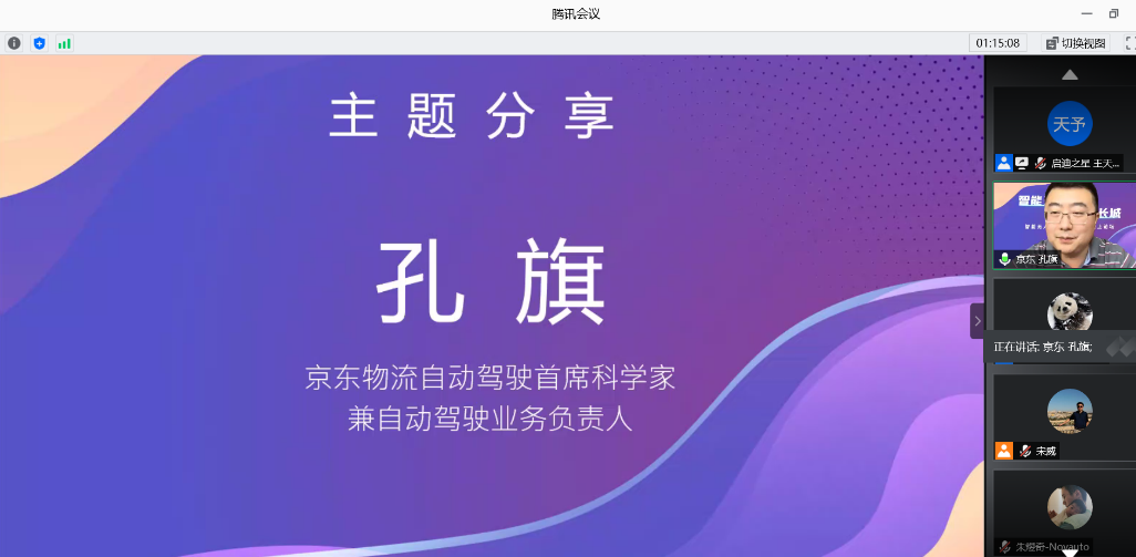 孔旗介绍了京东的无人驾驶技术和智能配送机器人在武汉疫情期间顺利运送物资,是无人装备在抗击疫情时发挥独特作用的典型例证。他表示,这次尝试或将对智能配送机器人的后续研发升级和普及应用带来极大的利好影响,并提出,在后疫情时代,无人配送将迎来的关键技术、产品化、商业化、平台化、产业链形成等机遇。