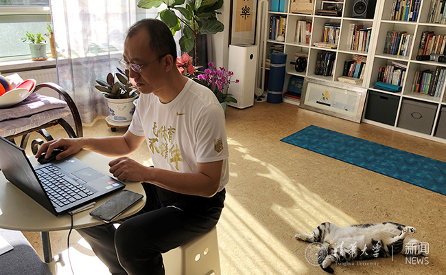 ——体育部教师周放在如期开课首日顺利上线了体育课。为了准备线上“首秀”,他还特意穿上了“无体育 不清华”的T恤,很多同学在屏幕前看到熟悉的服装都纷纷大呼:“好想回到校园里‘撸铁’!”课上,他通过雨课堂+网络会议系统结合的模式,插入提前找好的训练视频带领学生进行身体练习。课程临近结束,周放家里养的小花猫也“隆重出镜”,同学们在微信群里激动地说:“好想像周老师一样也养一只,这样我可以天天锻炼25小时!”