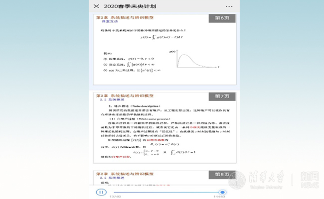 “我以前也曾想选这门课,但是这门课非常‘硬核’,要不然是因为某一学期的功课压力太大,实在腾不出精力,要么是因为正巧时间冲突,所以不得不忍痛割爱,一直没上这门课。这次这门课列入‘未央计划’,现在在家正好有时间,可以从容地学学这门课程了。” 于子宏的专业方向是无人机设计,他知道杨老师在这门课程里讲授的系统辨识和预测,在无人机控制器设计方面能起到很大的作用,如果认真跟下这门课,会非常有助于自己的专业研究。