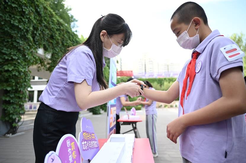 为学生佩戴测温手环