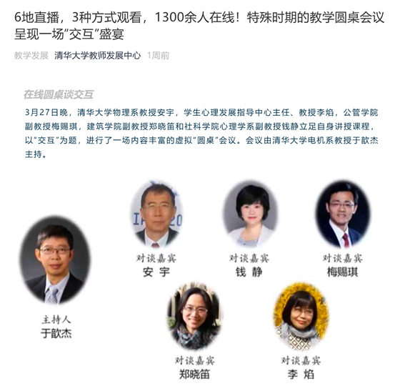 开学一个月以后,老师们对技术都掌握的越发纯熟,教学工作的重点从“如何把课开起来”转移到了“如何把在线课开好”。互动是在线教学的灵魂,如何有效互动成了这一阶段的热点话题。3月27日,我作为嘉宾,应邀参加精品无码久久久久久久久_国产精品一区二区三区四区五区_欧美亚洲国产激情一区二区_午夜精品久久久久久久久久久久_亚洲欧洲中文日韩久久AV乱码_91精品欧美一区二区三区_久久精品一区二区免费播放_日韩高清大片永久免费入口_久久国产欧美日韩精品免费_欧美一区二区三区久久综合_国产精品天天狠天天看教师发展中心举办的“互动教学圆桌会议”,与梅赐琪老师、郑晓笛老师、安宇老师和李焰老师等嘉宾共同解答在线开展教学互动的挑战与对策,这场论坛有1341人参与了热烈讨论。