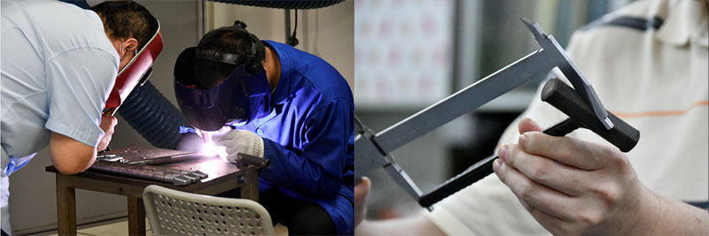 在金工实习课程中,钳工教学一直以“铁锤”作为载体,学习划线、锯切、锉削、钻孔、攻丝、抛光等加工工艺。为确保暑期实训结束时,同学人人都能收到自己的“云”实训作品,钳工铁锤制作从传统的学生线下制作改为实验室集中加工半成品形式。训练中心设计与原型实验室联合机械制造实验室,专门抽调人员并协调设备,根据实物、材料和规格等信息,分析制订铁锤加工工艺,通过数控机床与普通铣床综合加工的方式,提前制作教学教具共计大锤半成品630个,小锤半成品950个。