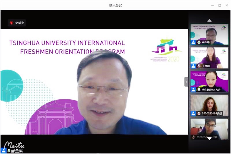 郦金梁对2020级国际本科新生的到来表示热烈欢迎,对同学们圆满完成全球暑期学校课程表示祝贺。他介绍了学校概况及拓展营培养目标,并鼓励同学们认真学习下一阶段的文化课程,为未来在清华的学习生活奠定良好基础。