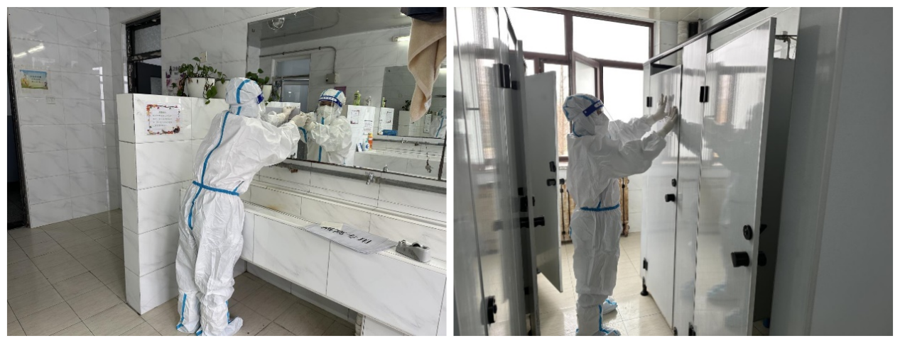 12日(周一):到各楼层卫生间、浴室给指定阳性专用点贴指示牌,进行防疫区和清洁区划分;给阳性学生送餐。