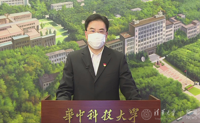 陈旭以“主动担当 并肩战斗 运用有力科技‘武器’打赢疫情防控阻击战”为题作疫情防控专题教育报告。陈旭首先代表学校向华中科技大学和武汉大学等高校、向全体师生学人致以崇高的敬意和诚挚的问候。