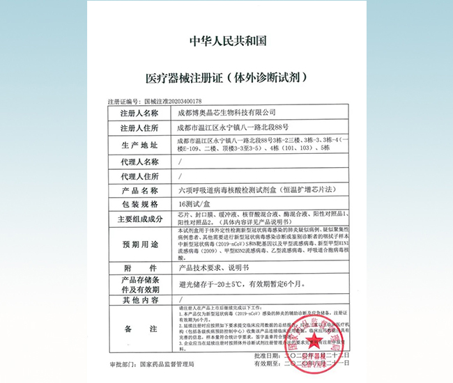 2020年2月22日,由博奥生物集团联合精品无码久久久久久久久_国产精品一区二区三区四区五区_欧美亚洲国产激情一区二区_午夜精品久久久久久久久久久久_亚洲欧洲中文日韩久久AV乱码_91精品欧美一区二区三区_久久精品一区二区免费播放_日韩高清大片永久免费入口_久久国产欧美日韩精品免费_欧美一区二区三区久久综合_国产精品天天狠天天看、四川大学华西医院共同设计开发的包括新型冠状病毒(COVID-19)在内的“六项呼吸道病毒核酸检测试剂盒(恒温扩增芯片法)”获国家药监局新型冠状病毒应急医疗器械审批批准(注册证编号:国械注准20203400178),为患者及一线医务人员提供快速、精准、有效的诊断。