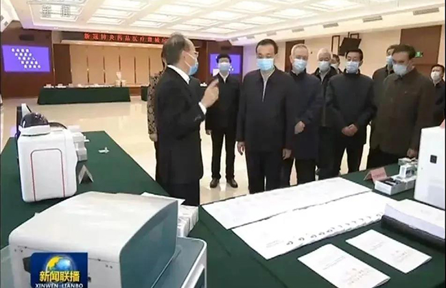 程京向李克强总理汇报博奥获批的检测芯片试剂盒及配套检测仪器研发和应用情况