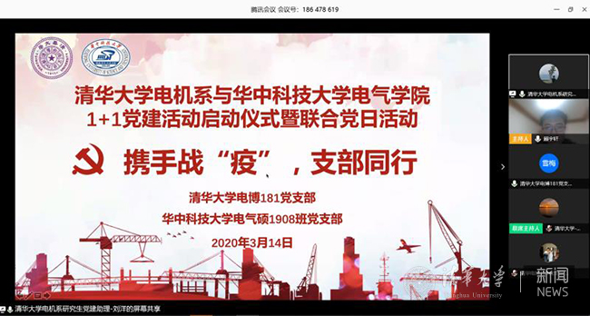 活动最后,于歆杰作总结发言。他向华中大全体师生以及身处疫情中心的武汉人民致以崇高的敬意,并引用歌词“日落是沉潜日出是成熟,只要是光一定会灿烂的”,勉励大家发扬优良传统,秉承求真求实精神,传承红色基因。同时,他也叮嘱大家扎实科研、提高效率、强身健体,争取做出创新型成果,取得基础性突破。最后,他向华中大电气学院师生发出诚挚邀请,“待到春暖花开日,共聚华中大,共聚清华园!”