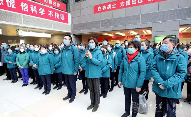 张抒扬代表北京协和医院第二批援鄂抗疫国家医疗队在出征前讲话(图片来源:北京协和医院)