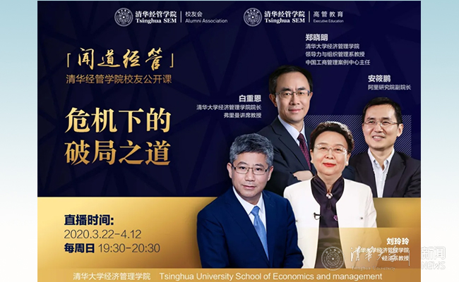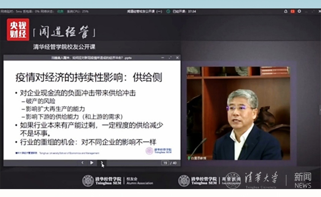 3月22日,经管学院弗里曼讲席教授、院长白重恩在“清华经管学院校友终身学习计划——‘闻道经管’校友公开课”的首场授课经新华网、央视财经、人民网、央视频等11家权威媒体联合播出,实时在线及回放观看已近1000万人次,引起了社会的广泛关注和强烈反响。
