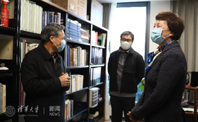 陈旭调研了出土文献中心新办公楼使用情况,重点检查了新建的“清华简”文物库房,并代表学校向中心成员以高度责任感和专业精神圆满完成文物搬迁工作表示衷心感谢,对中心关于设立李学勤先生纪念室的设想表示赞同,希望以此展示和发扬先生的学术精神和优良学风。陈旭还看望了当日在办公室的备课教师,与大家亲切交谈,详细了解大家在疫情期间的科研进展、线上教学等情况。