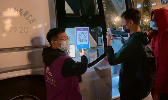 随着疫情风险升级,在双清公寓和校园之间,通勤车成为连接“两地”唯一的交通工具。每一个清晨、午后与深夜,有这样一群人,集体接棒15小时,护送通勤车抵达目的地。