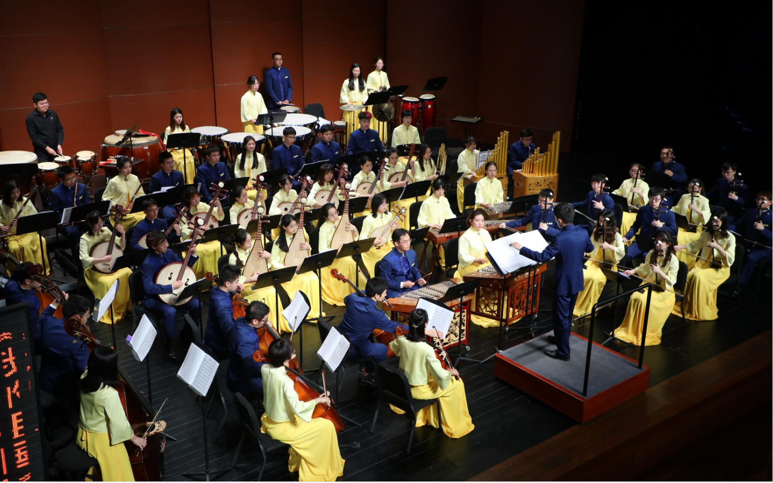 令我惊讶的是,没有老师在身边,学生们更自律了。每个队伍都保持阵容整齐,情绪饱满,力争达到有限条件下的最好效果。演出结束后,军乐队的薛啸天同学兴奋又得意地跟我说:“老师,我第一次在新清华学堂的舞台上指挥乐队!”他把“新清”这两个字还加了重音。后面他还发了长文,感慨“指挥是真的难”,表达了“组织有需要就顶上”的心声!