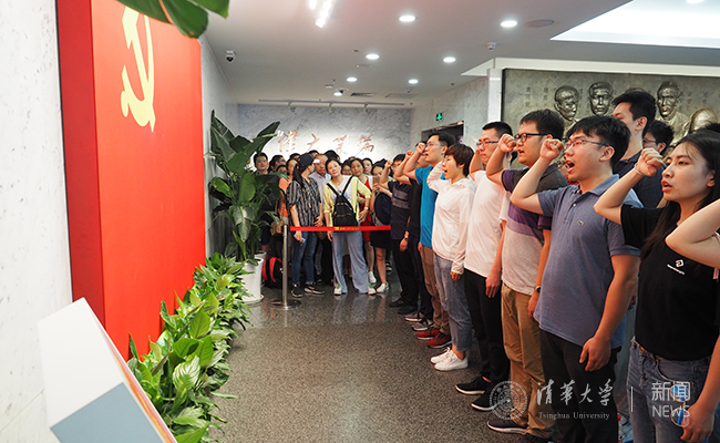 实践支队成员在中共一大会址宣誓厅重温入党誓词