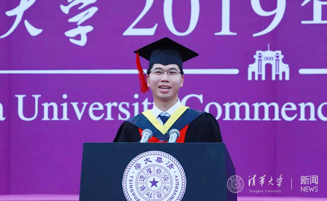 今天正好是我第九次来到毕业典礼现场。每一次毕业季,我都会穿着白队服和军乐队同学一道演奏校歌、送别毕业生;大家也可能在新清华学堂的舞台上看到过我,我就是话剧《马兰花开》里面那个能够“自动定位”的景片;我还在临毕业最后一年担任了党支书,为集体站好了最后一班岗。感谢清华给我这么多宝贵的机会,让我勇敢地尝试无限可能,成为各种不一样的自己。