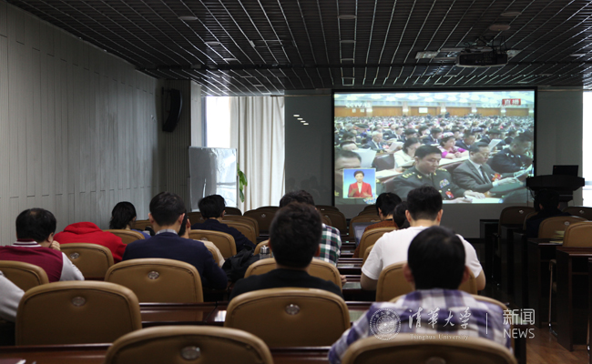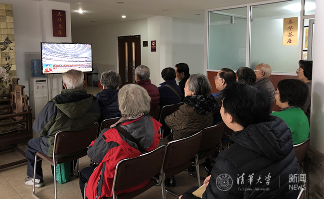 校领导和专家学者在工字厅东厅集中收看人大开幕 李派