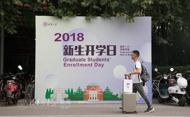 综合体育馆内外,包括国际学生在内的多名研究生志愿者们在紧张而有序地忙碌着,引导新生有条不紊地完成报到手续。院系迎新点处,学长学姐正在仔细地为新同学讲解报到程序、注意事项和学科特色;新清华学堂的广场上,“清华有你,芳华共启”的立体标语引入注目,新生们纷纷与之合影,在清新靓丽的清华园里开启属于自己的芳华岁月。