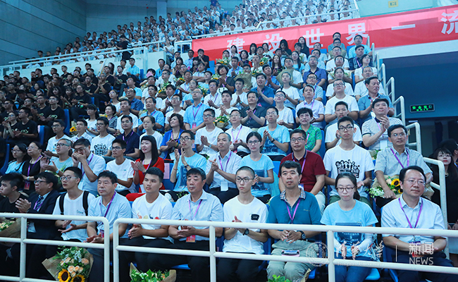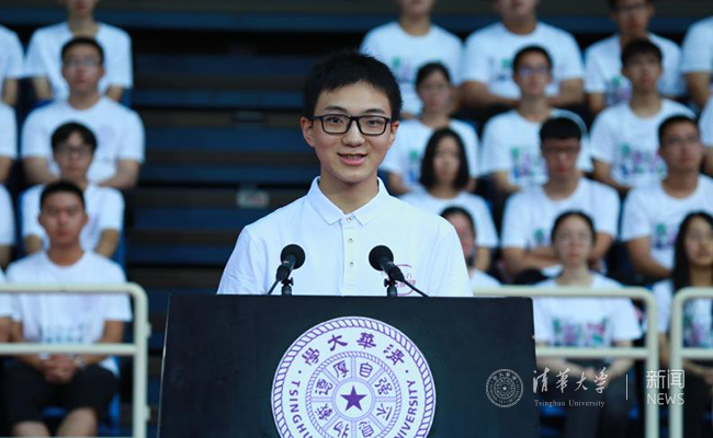 在热烈的掌声中,校长邱勇发表了题为“用一生去追寻科学精神”的讲话。邱勇首先代表全校师生员工,对新同学的到来表示热烈欢迎,祝愿同学们在美丽的清华园实现自己的人生理想!