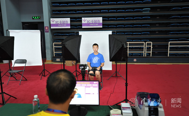 综合体育馆内新生拍照制作学生卡 殷昊