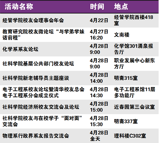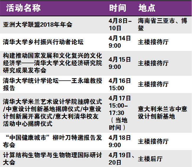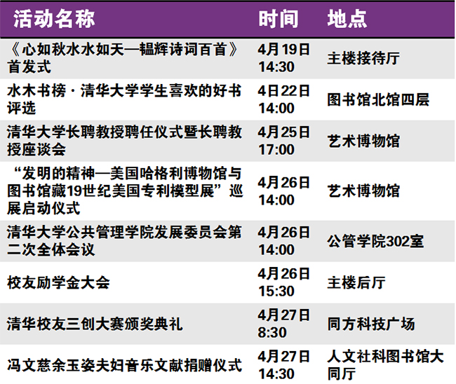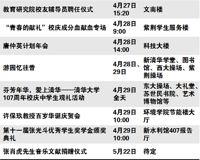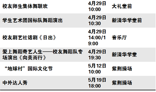 秩年、学术、体育、展览、校园开放、艺术、院系校友活动
