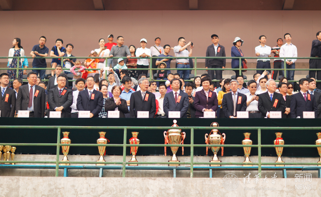 校领导邱勇、陈旭、姜胜耀、邓卫、吉俊民、杨斌、李一兵、尤政、王希勤、过勇,学校老领导方惠坚、王大中、贺美英、顾秉林、杨家庆、张思敬、张慕葏、黄圣伦、王凤生、倪维斗、余寿文、胡显章、关志成、张再兴、郑燕康、孙道祥、袁驷、谢维和、韩景阳、史宗恺,各院系、部处负责人出席开幕式并在观礼台就座。