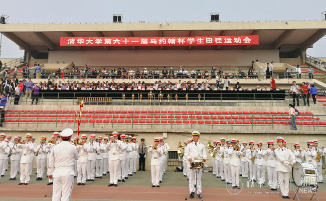 8:00整,伴着军乐团激昂的乐声,国旗班成员、校旗方阵、裁判员方阵、体育协会方阵、各院系运动员方阵和校友代表方阵依次入场。主席台和看台上的观众全体起立,为各个方阵鼓掌加油。整齐的步伐、统一的着装、响亮的口号,还有展现院系特色的“吉祥物”,每一个方阵在引导员、旗手和领队老师的带领下,依次走入赛场,走过看台,充分展现出清华学子积极向上、拼搏奋进的风采和精神。