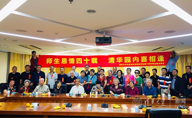 校友们对电子系的发展表示欣慰。随后,1974级校友和任教老教师进行了师生交流,共同追忆40年前的岁月。杜吉田代表1974级全体同学表达了对老师们的感恩和谢意。40年的风雨岁月,难忘恩师的谆谆教诲,老师们不仅教给了大家基本的知识和技术,更重要的是教导大家如何做一名优秀的清华学子。在场的老教师们也勉励同学们改变心态,要把握人生的每一段时光,保持愉快的心情。