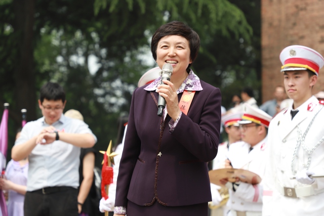 在大礼堂前,校党委书记陈旭向参与游园演出的同学们表示慰问,同时也向返校观演、共庆107周年校庆的广大校友表示热烈欢迎。