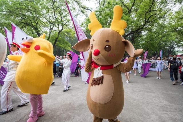 各院系吉祥物在大礼堂草坪前 彭瑞轩 摄